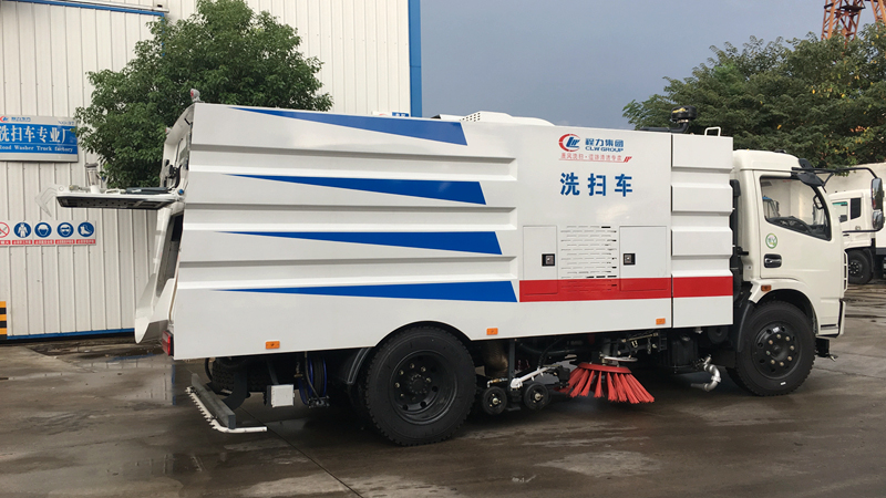1)該車集掃路車、灑水車和高壓清洗車功能于一體,具備路面清掃、路面洗刷、高壓清洗、低壓沖洗、路緣石洗刷、垃圾收集、污水回收、噴霧降塵和道路隔離墻清洗、小廣告清洗等多種作業(yè)功能。