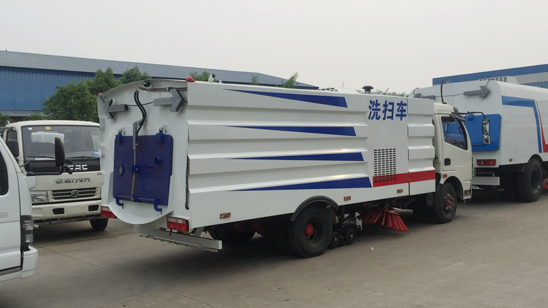 6)具備倒車保護(hù)裝置,在作業(yè)過程中如遇緊急倒車,智能化的控制系統(tǒng)會(huì)自動(dòng)停止作業(yè)并收回掃盤、吸盤和側(cè)噴桿;具有防止舉升垃圾箱翻車保護(hù);具有檢修安全保護(hù)。