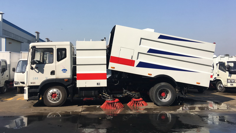2、采用副發(fā)動機專門驅(qū)動風(fēng)機和液壓系統(tǒng),保證行駛過程中能繼續(xù)工作,保證清掃過程的連續(xù)性。
