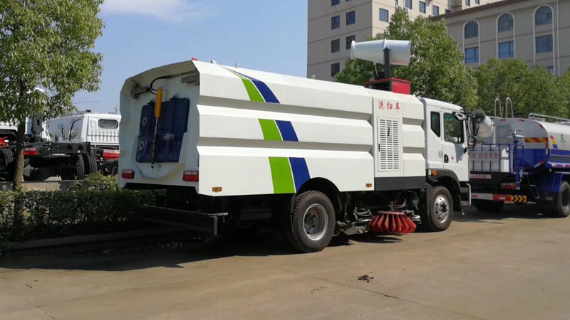 8)采用先掃,后沖刷,再吸收的工作方式,能將垃圾及污水一次清掃、沖刷、吸收干凈。路面作業(yè)后無塵土,無積水;