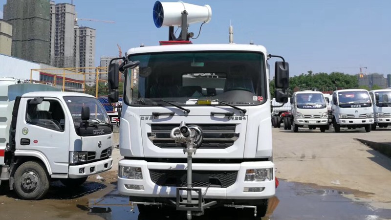 2. 啟動副發(fā)動機(jī)和高壓水泵,打開后噴霧開關(guān),啟動底盤車前行,就可進(jìn)行噴霧降塵作業(yè)。